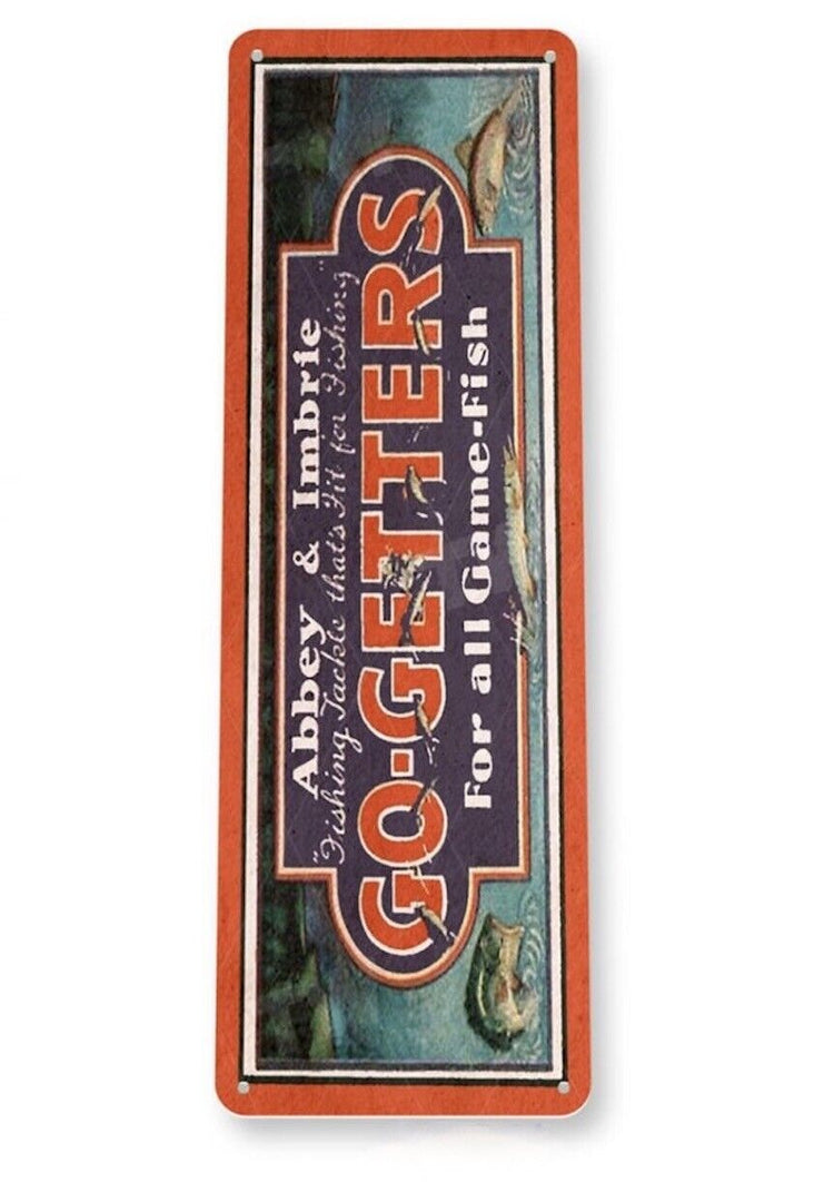 Go - Getters Fishing Lure Tin Sign Abbey & Imbrie Tackle Advertising Sign