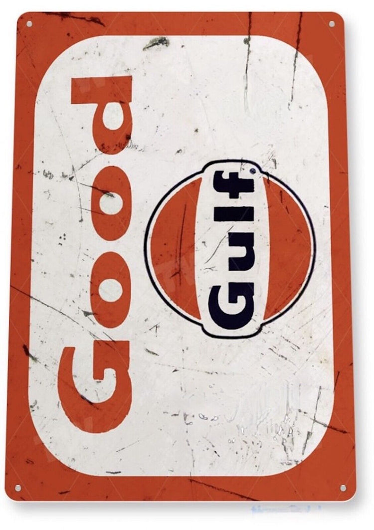 GULF GASOLINE TIN SIGN REFINING COMPANY PITTSBURGH PA SOLD HERE RUSTIC REFINERY
