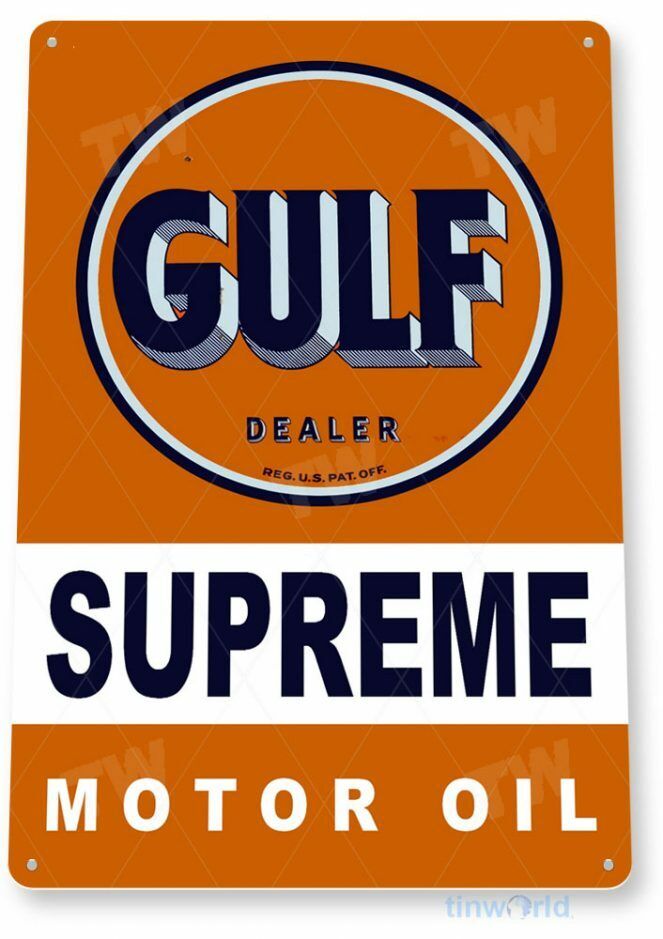 GULF PREMIUM GAS AND OIL 11 X 8 TIN SIGN AUTO AUTOMOBILE MECHANIC ADVERTISEMENT