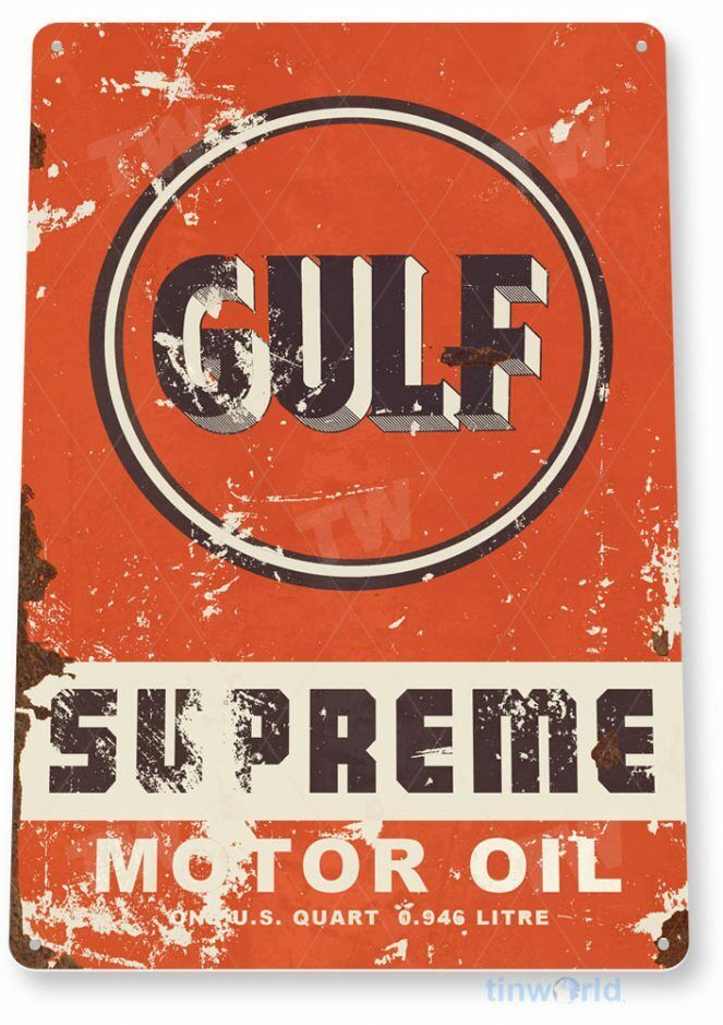 GULF SUPREME MOTOR OIL 11 x 8 TIN SIGN AUTO AUTOMOBILE MECHANIC ADVERTISEMENT