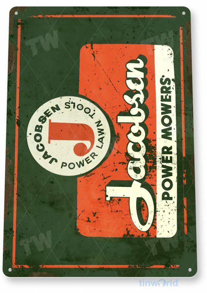JACOBSEN POWER MOWERS 11 X 8 TIN SIGN NOSTALGIC REPRODUCTION ADVERTISEMENT