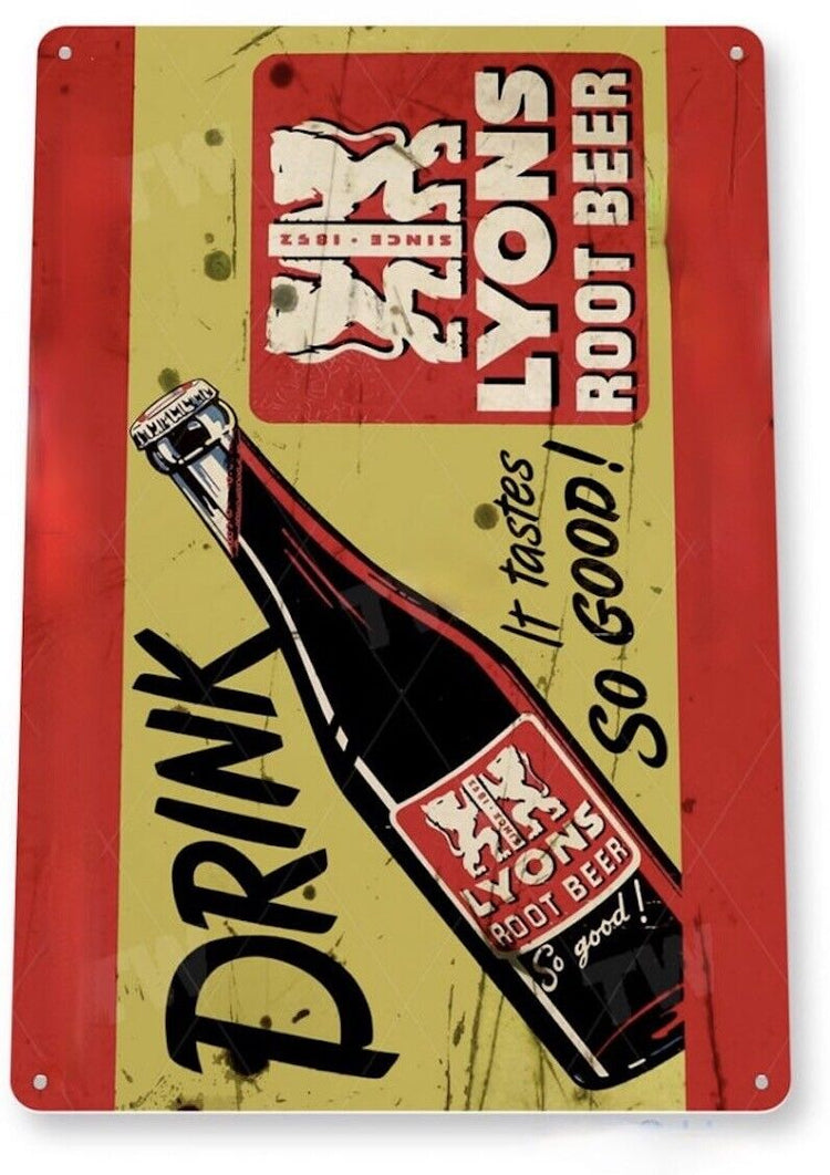 LYONS ROOT BEER TIN SIGN COLD BREWED OLD FASHIONED IT TASTES SO GOOD CANDY WRAP