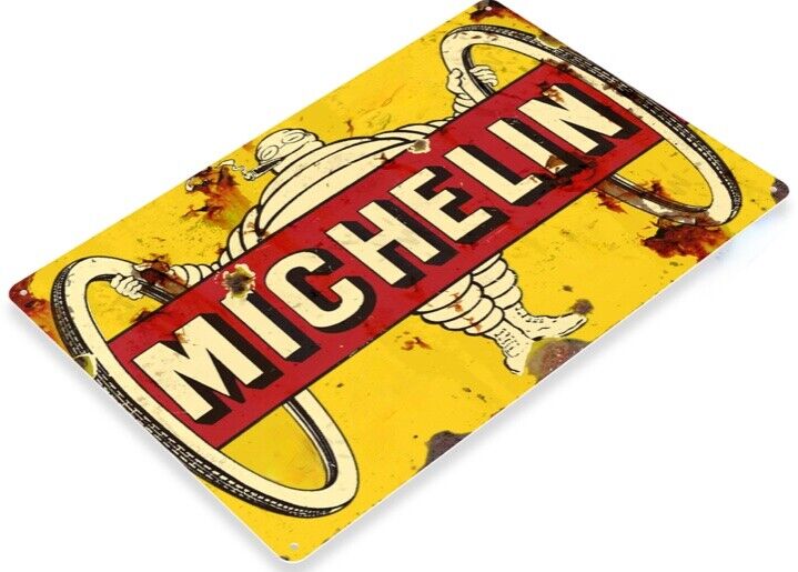 MICHELIN TIN SIGN MAN TIRE COMPANY FRANCE LE MANS FORMULA ONE MOTORCYCLE BICYCLE