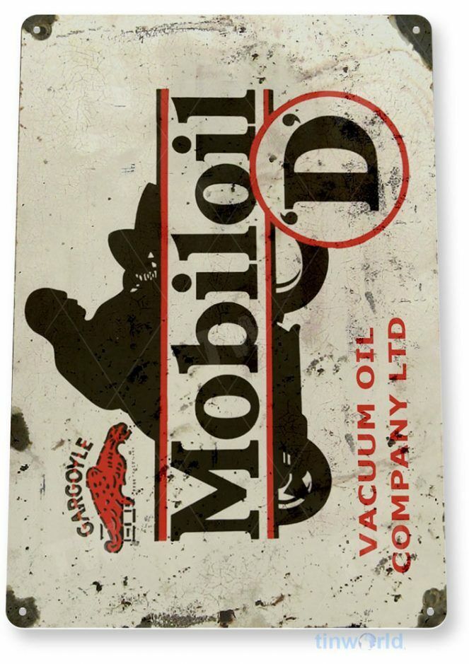 MOBILOIL 11 x 8 TIN SIGN AUTO AUTOMOBILE MECHANIC ADVERTISEMENT MOBIL MOTOR OIL