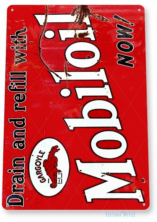 MOBILOIL GARGOYLE OIL 11 X 8 TIN SIGN AUTO AUTOMOBILE MECHANIC ADVERTISEMENT