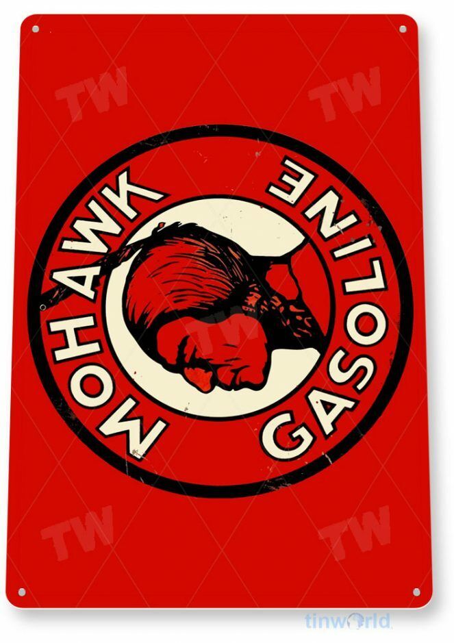 MOHAWK GAS AND OIL 11 X 8 TIN SIGN AUTO AUTOMOBILE MECHANIC ADVERTISEMENT