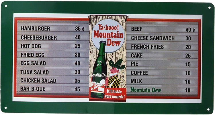 MOUNTAIN DEW 9 x 16 INCH TIN SIGN MENU BOARD DO THE #DEW #TINSIGN DINER DRIVE IN
