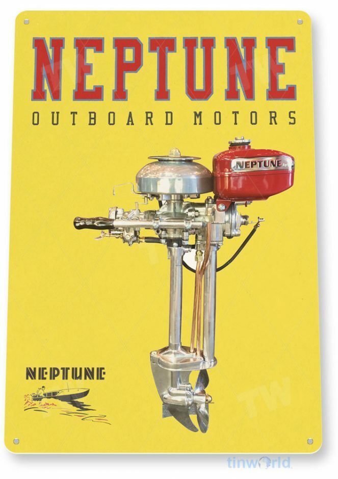 NEPTUNE OUTBOARD MOTORS 11 X 8 TIN SIGN AUTO AUTOMOBILE MECHANIC ADVERTISEMENT