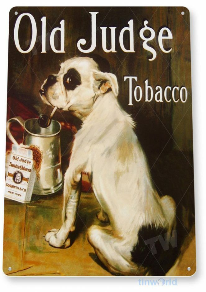 OLD JUDGE 11X8 TIN SIGN TOBACCO SNUFF CIGARETTE PIPE TOBACCIANA AD PIPE PAPERS